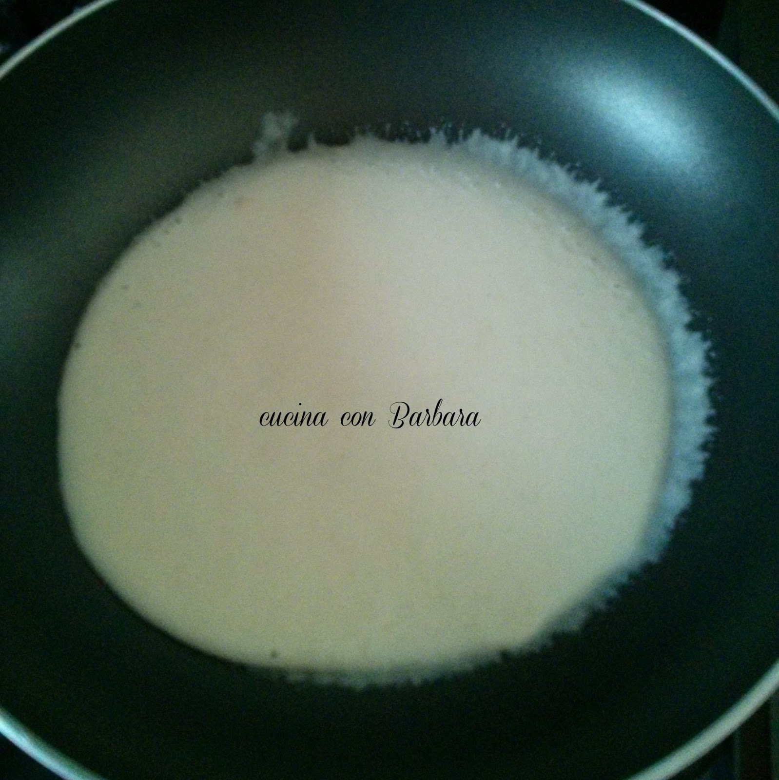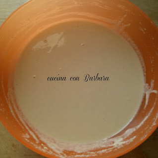 Mescolare insieme gli ingredienti fino ad ottenere un composto liscio senza grumi. Lasciamo riposare il composto per almeno mezz'ora.