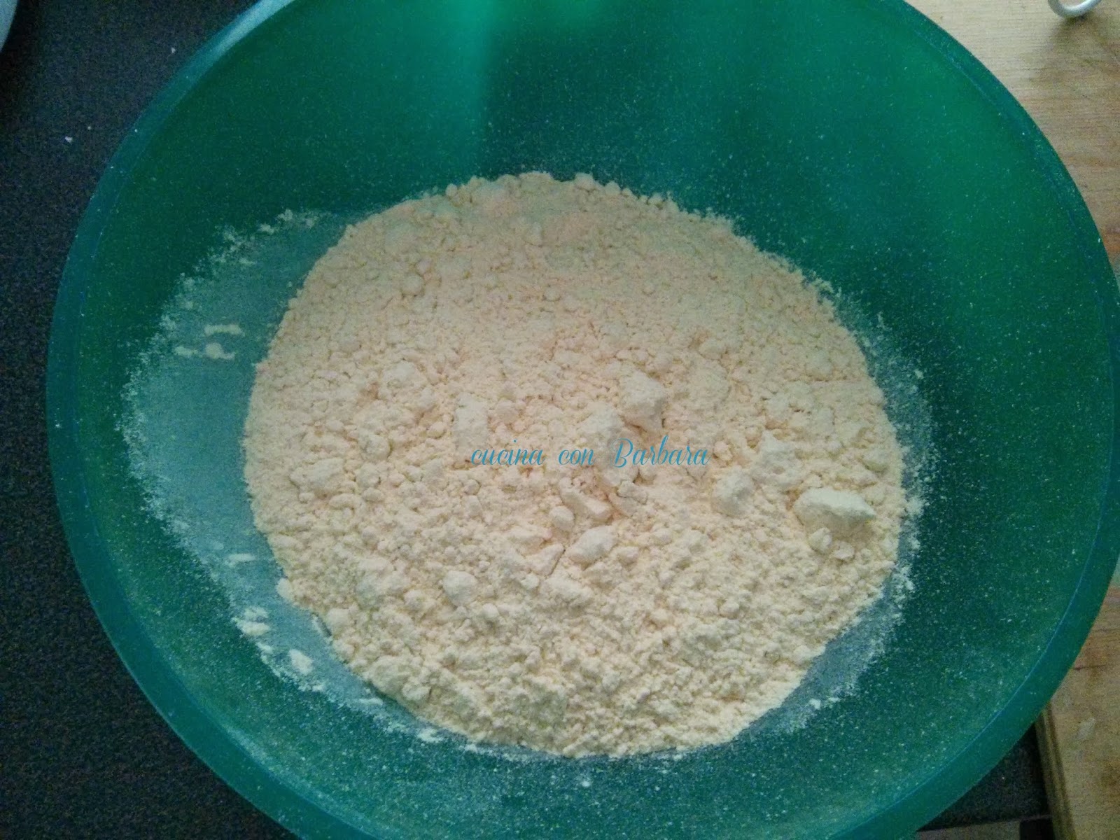 al centro versiamo man mano l'acqua e amalgamiamo il tutto.