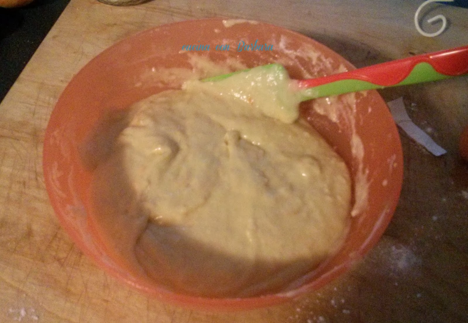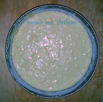 Amalgamiamo il tutto e versiamo in una tortiere precedentemente oliata e infarinata.