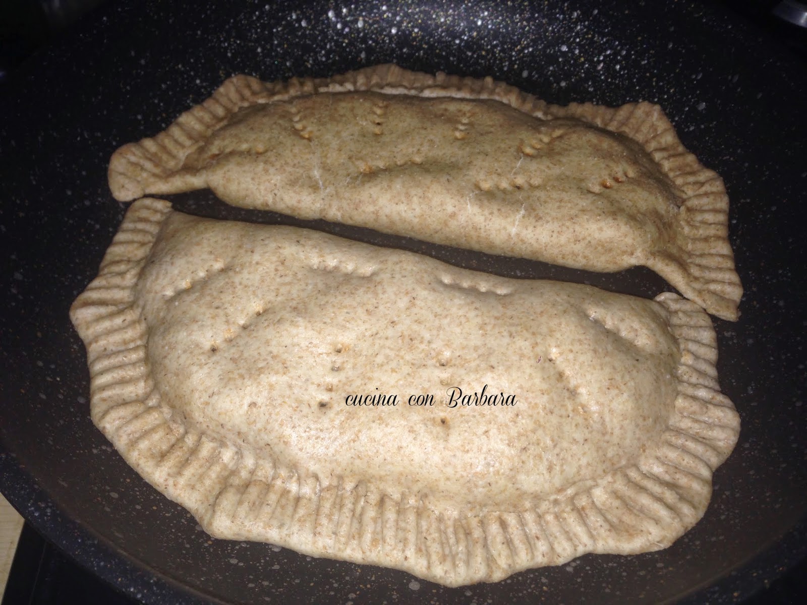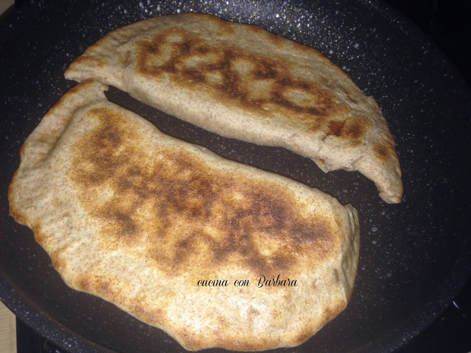 Nel frattempo facciamo scaldare una pentola antiaderente, quando è bella calda facciamo cuocere il calzone per circa 5min per lato a fuoco medio-basso.