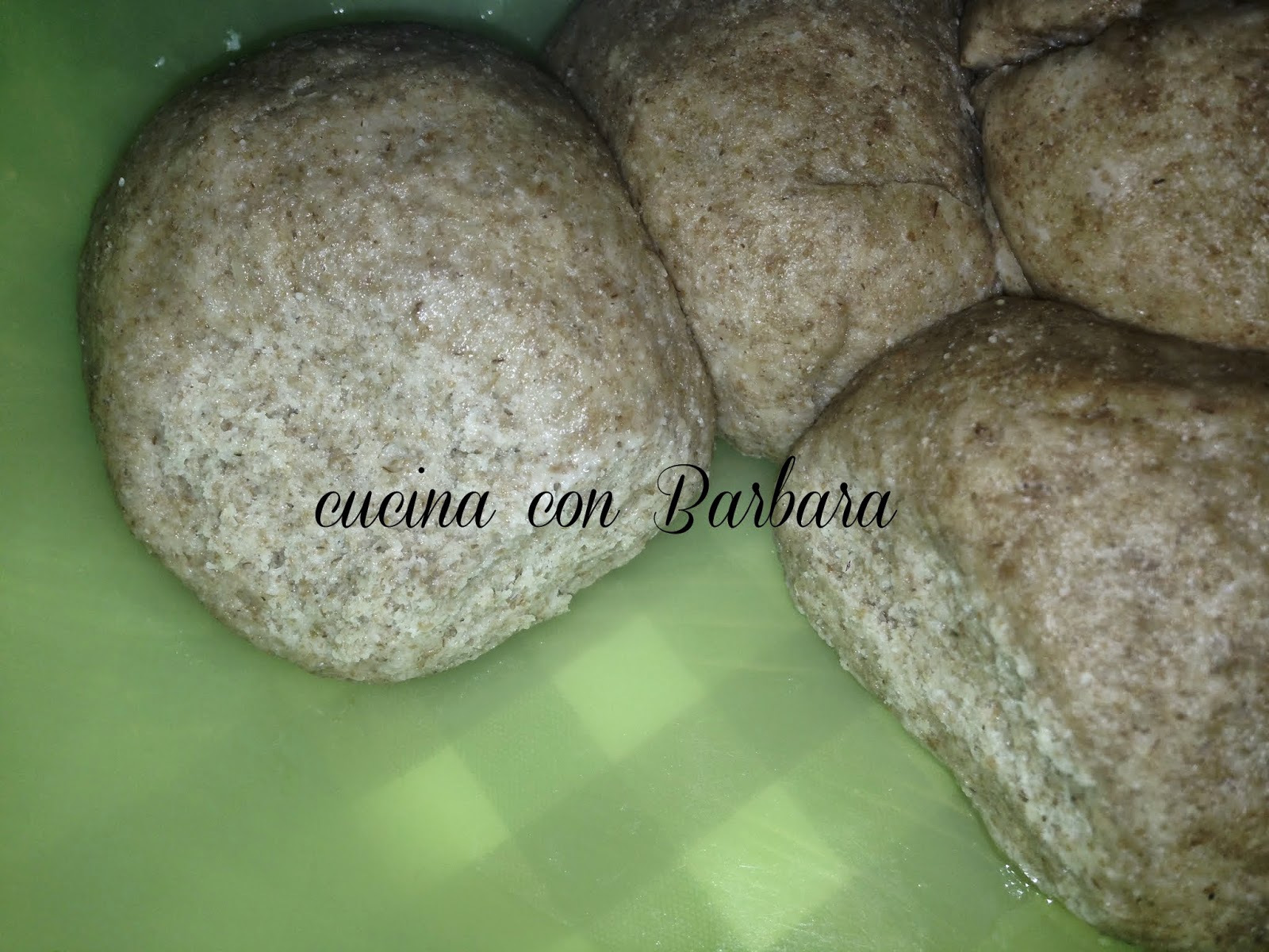 Facciamo lievitare per 1/2 ora. Dividiamo il panetto in palline da 80-100g l'una (a me ne son uscite 8).