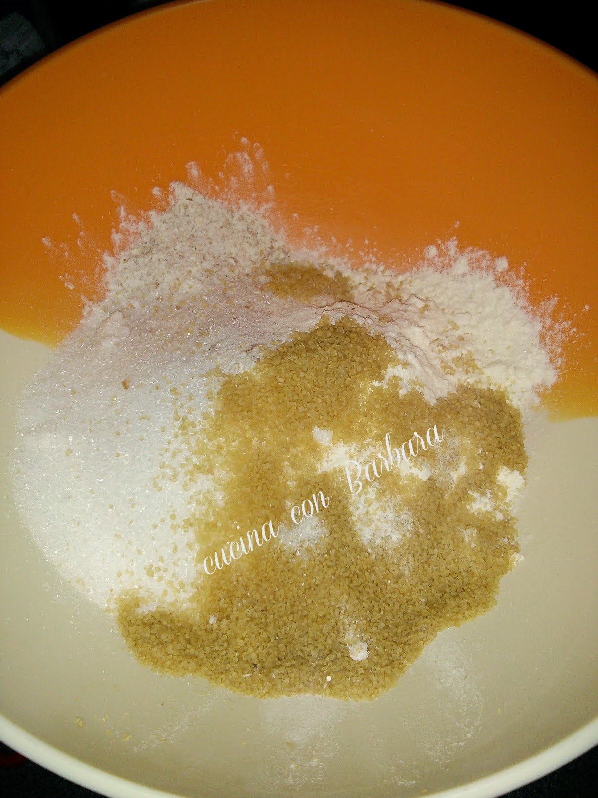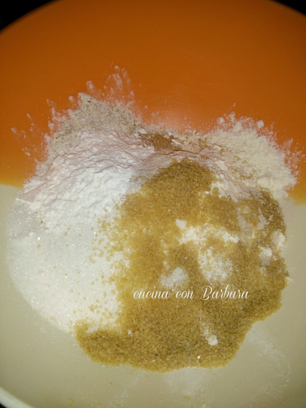 Accendiamo il forno a 180°C. In una ciotola inseriamo tutti gli elementi secchi e li mescoliamo.