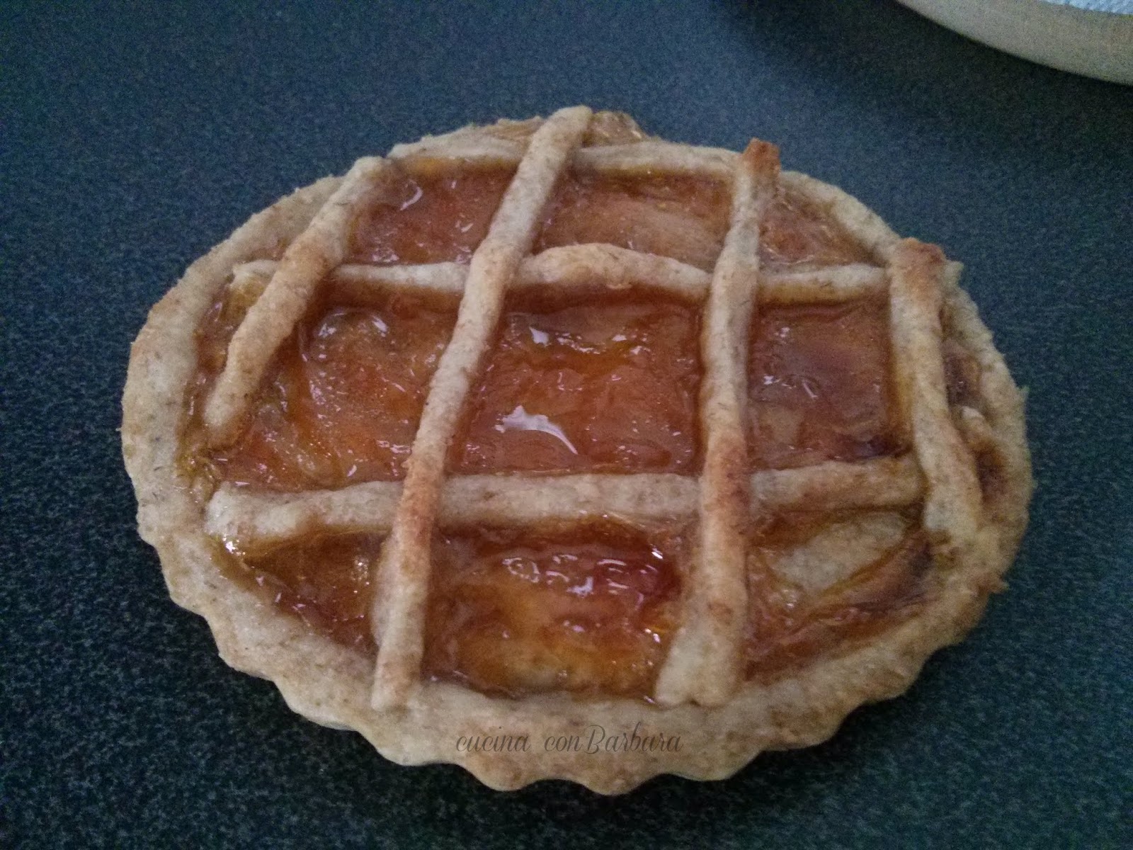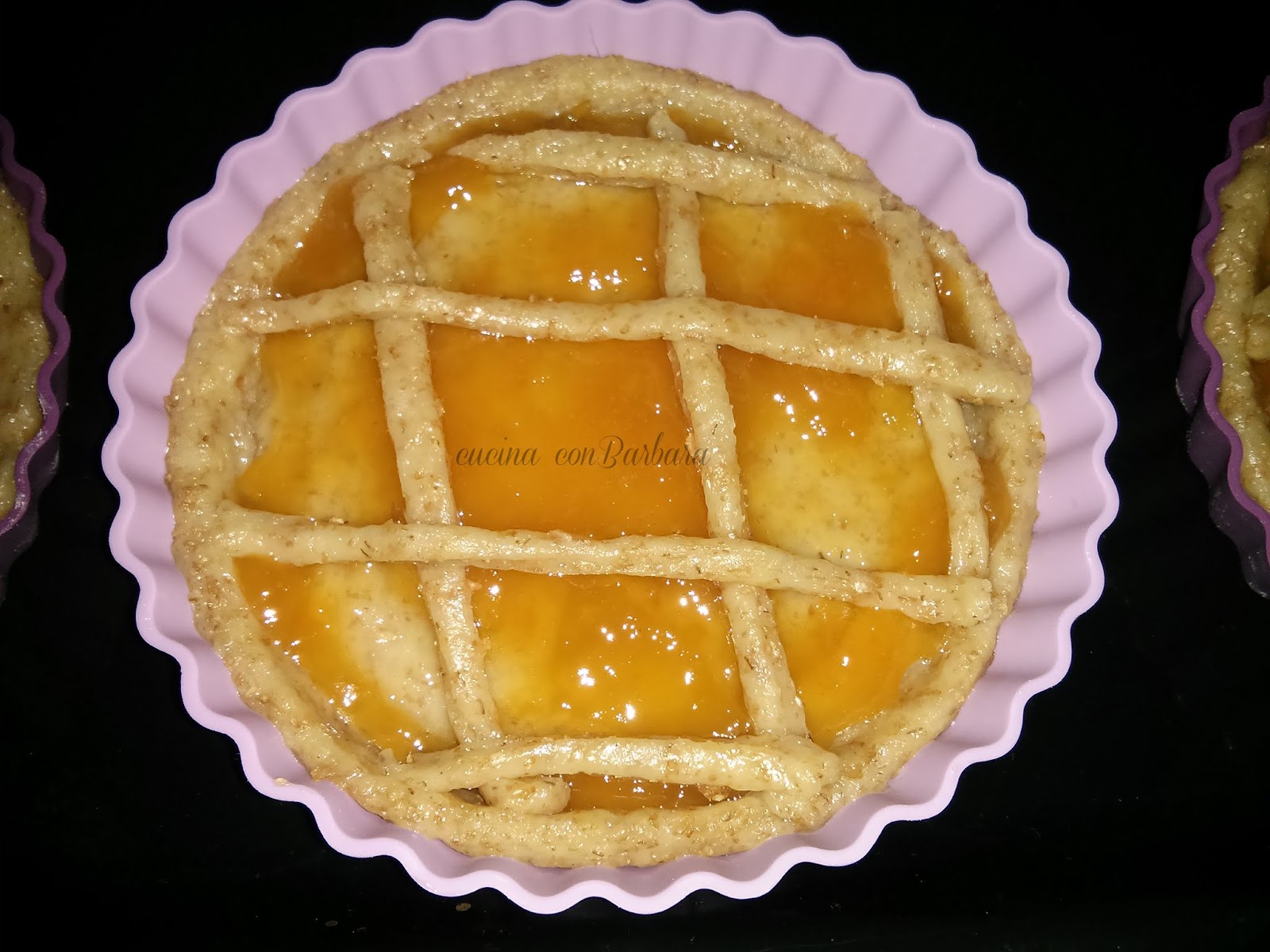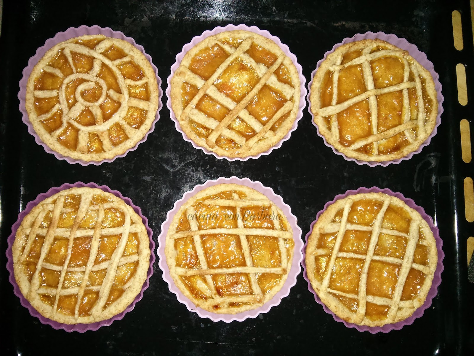 Passata un'ora, prendiamo l'impasto e, con l'aiuto di un mattarello, lo stendiamo. Foderiamo i nostri stampini con la pasta frolla, la buchiamo con una forchetta, stendiamo la marmellata e decoriamo la crostatina.